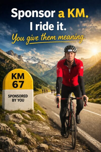 The idea is that I cycle the kilometres and you donate one euro, franc or dollar for every kilometre I cover.